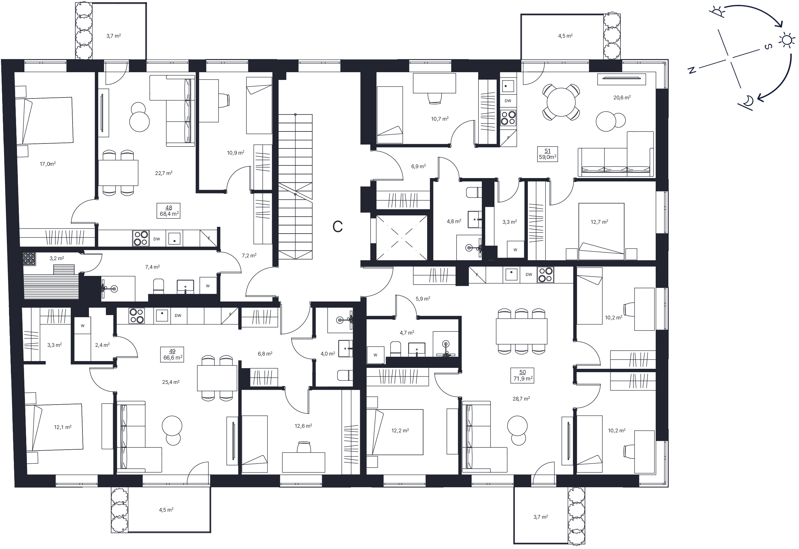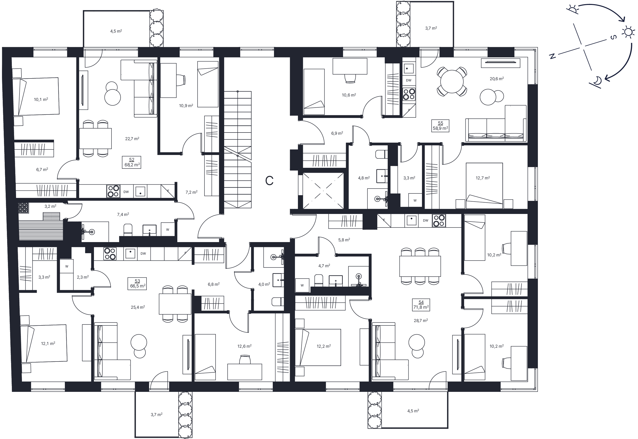 Miera 75 C | C | 44 | 1 | 2 | 48.5 | 7 | Jā | 55.5 | 159 900 |